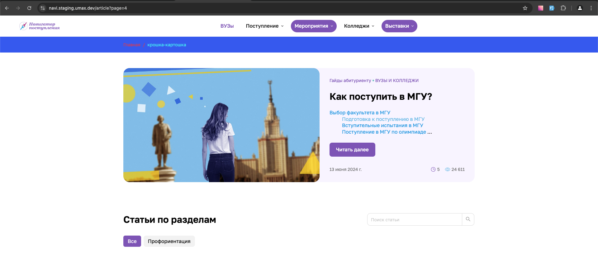 Статьи по разделам